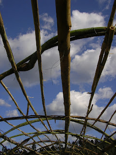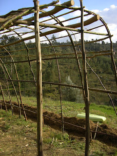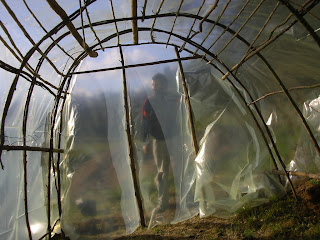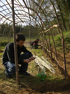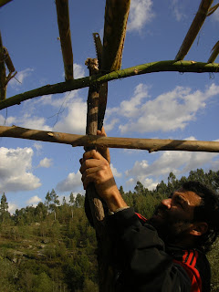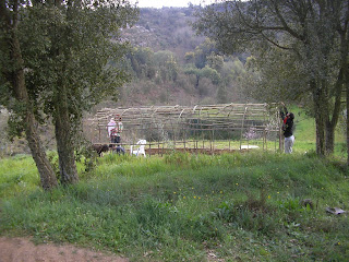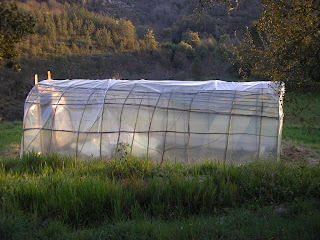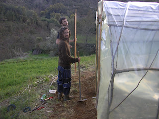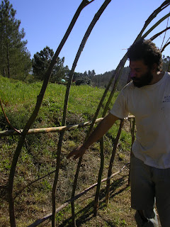 We made a small polytunnel with the leftovers from the eucaliptus used in our eco-building which we will use to seed plants for our garden.