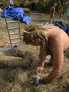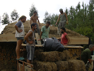 Por Favor vem na quinta-feira, dia 1 de Novembro, ajudar a acabar a ultima parede de madeira e lama da eco-casa com o Tony.